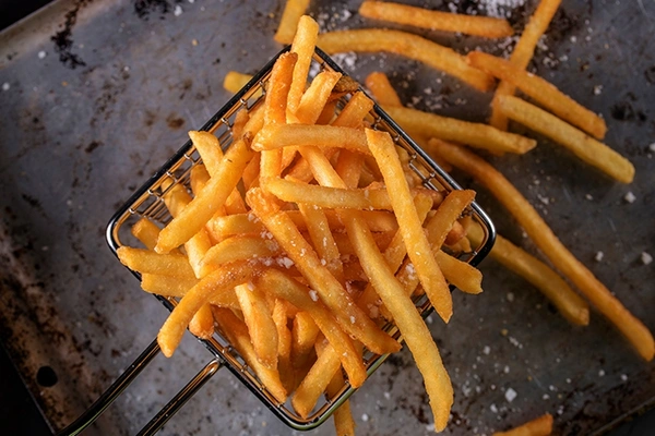 Deep-fried, salted slices of potato drenched with Indian masala.